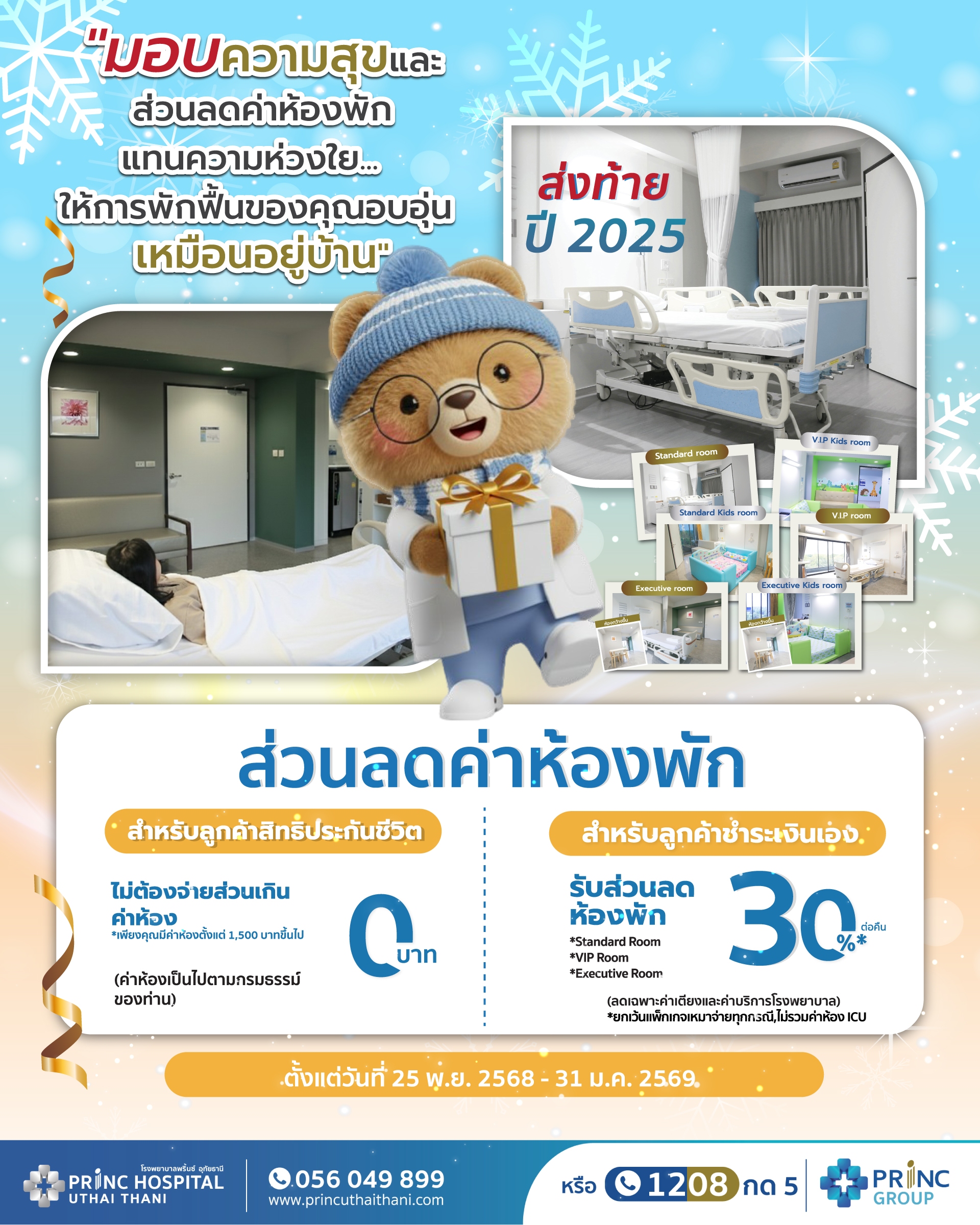 รับส่วนลด 5-10 % เฉพาะค่าห้อง ค่ายา เมื่อมารับบริการที่ โรงพยาบาลพริ้นซ์อุทัยธานี